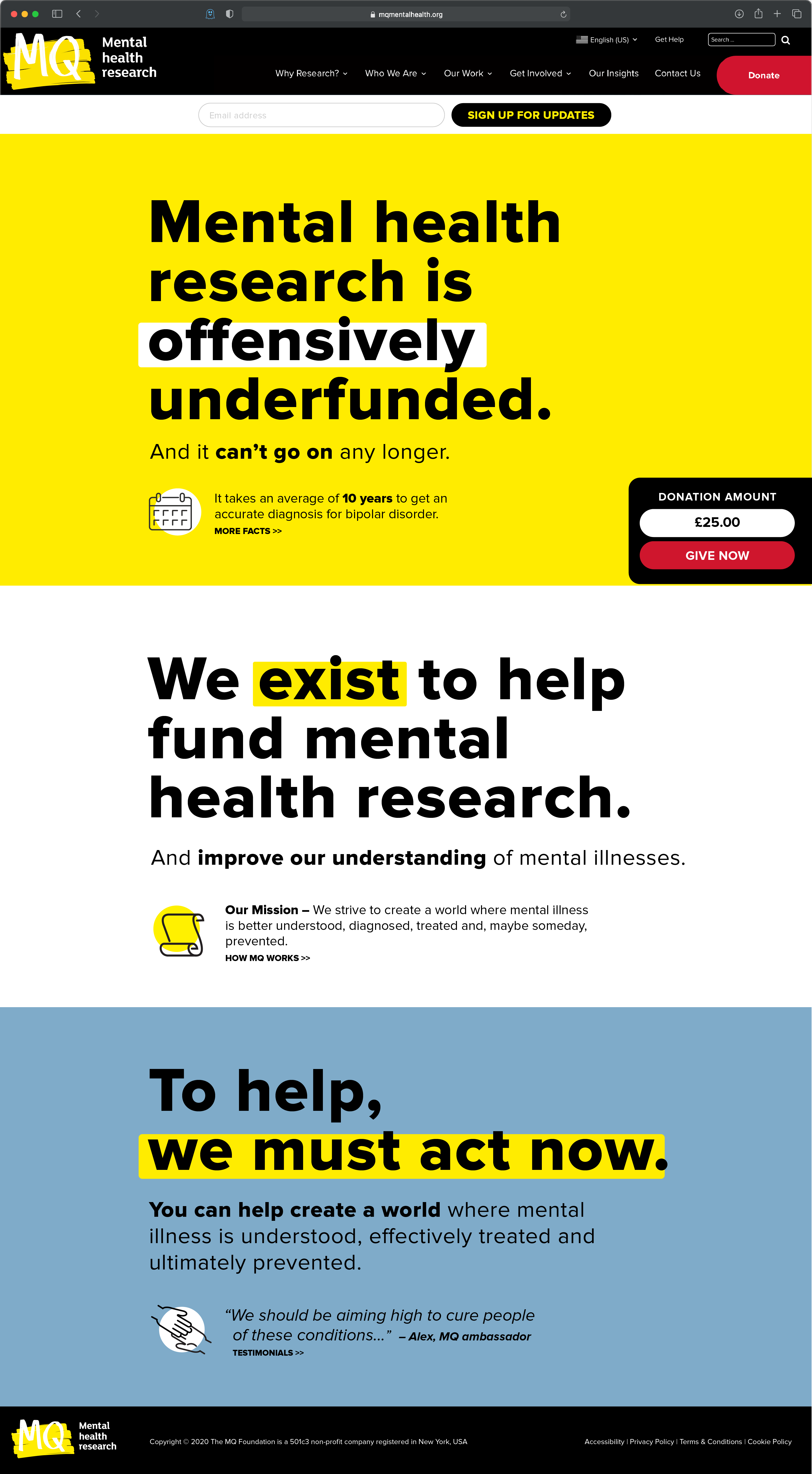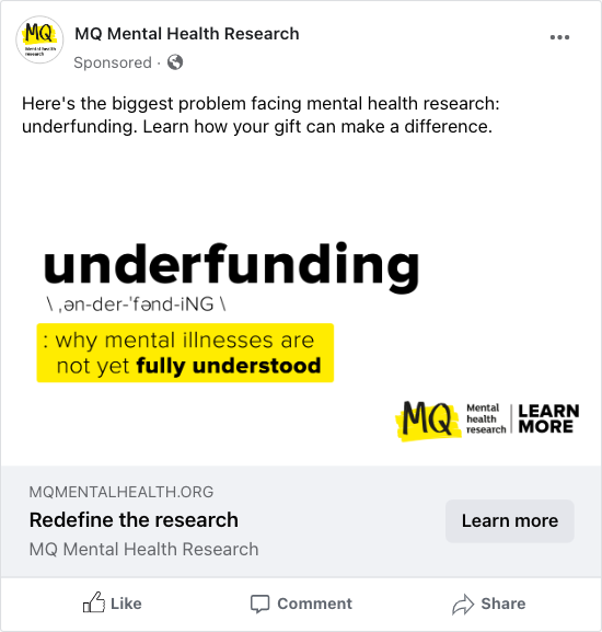 MQ's nurture campaign needed a reset. Why? Because its U.K. audiences weren't quite grasping one key insight: Lack of funding for mental health research is the root cause of issues with mental health treatment options. This wasn't necessarily new information, but it was the first time MQ was putting it out there so bluntly.